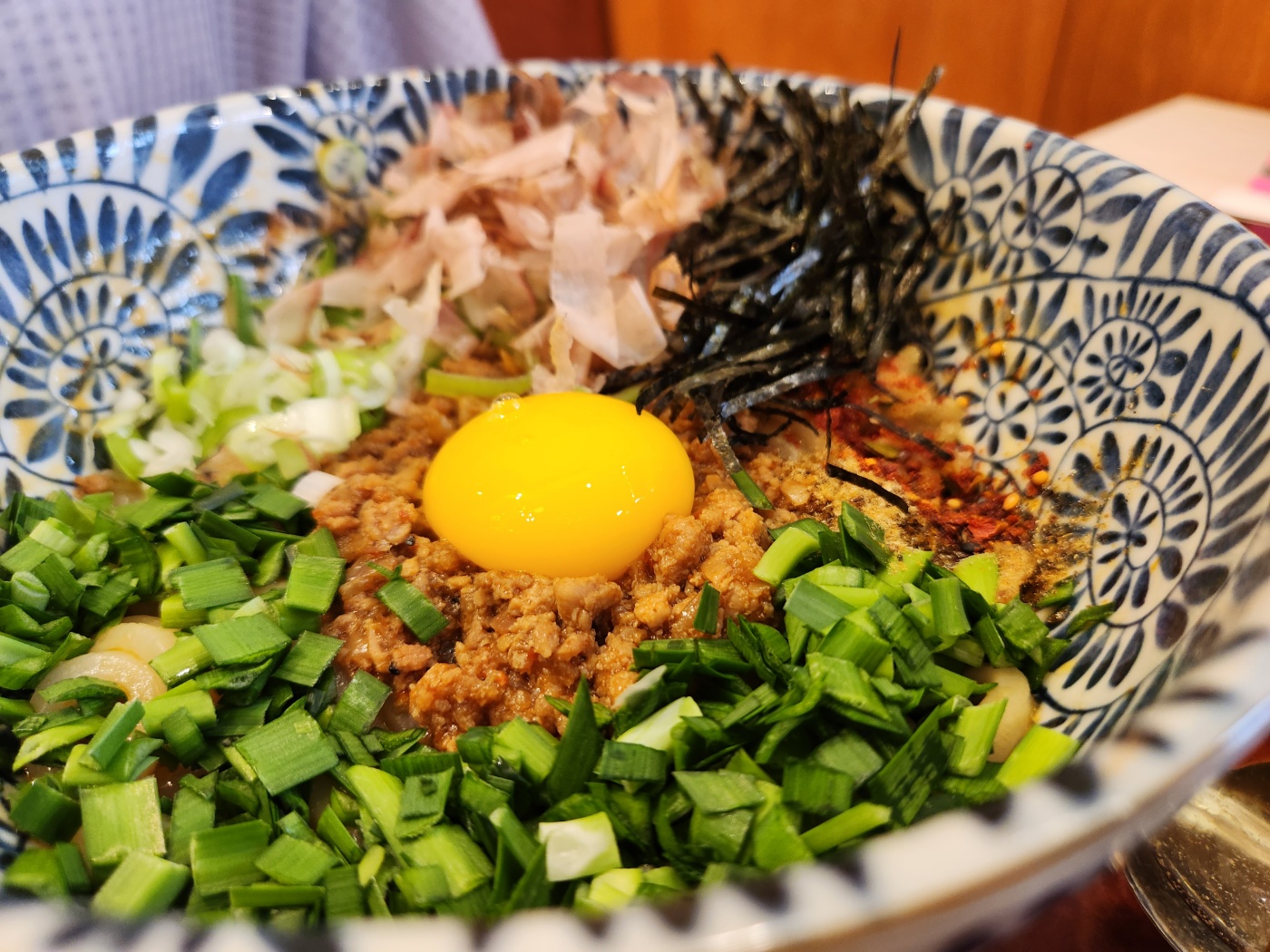 마제소바는 특제소스와 각종 재료를 함께 비벼서 면을 먼저 먹은 후 밥을 비벼서 먹습니다