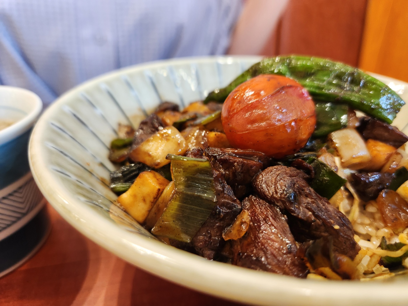 덮밥은 비비지 말고 숟가락으로 떠서 먹습니다 그리고 밥에 고기를 올리고 와사비를 올려서 드시면 더 맛있습니다
