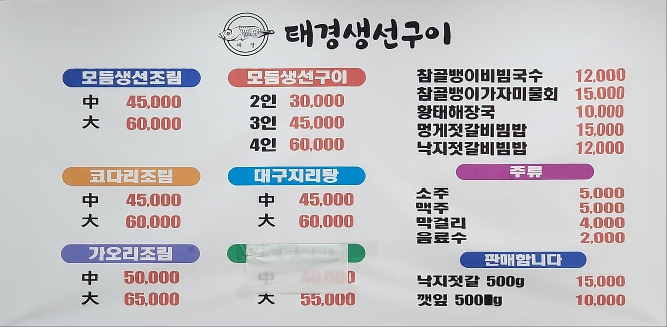 | 취급어종 | 가자미, 임연수, 고등어, 뽈락, 서대, 삼치, 조기, 코다리, 민어, 알도루목, 양미리 |